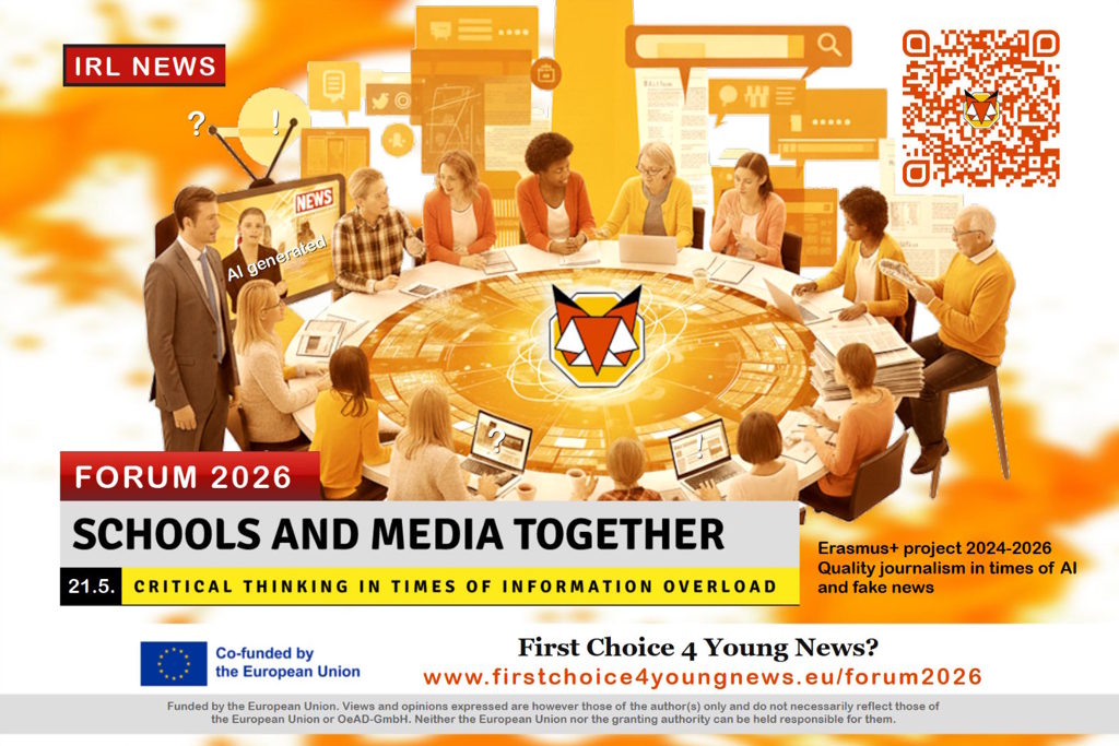 The main objective of the project „First Choice 4 Young News“ is to enable teachers to encourage young people’s interest in serious journalism, to promote critical media literacy and to raise awareness about AI and fake news in digital media channels.